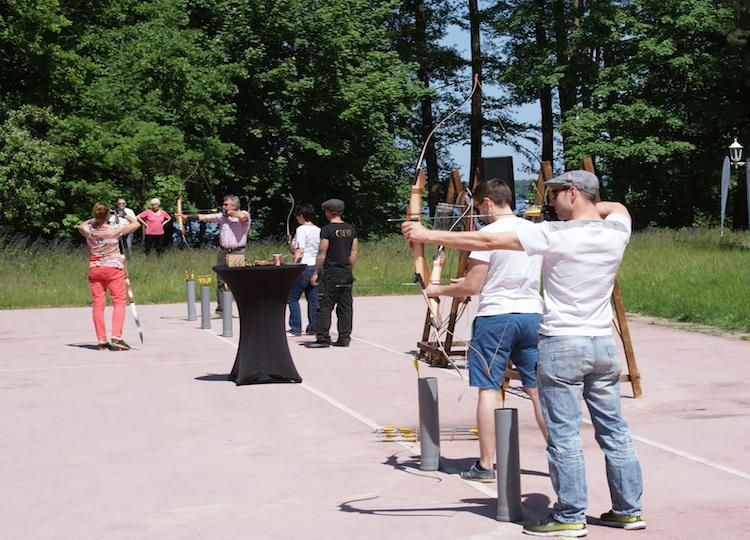 Bogenschießen ist ein klassisches Element, allerdings wird es häufig in seiner nachhaltigen Wirkung unterschätzt. Dieses Team-Spiel fördert Konzentration, eine richtige Haltung, Atmung, Achtsamkeit und die strategische Ausrichtung im Team. Wie können wir die meisten Punkte sammeln und wie nutzen wir die Stärken des anderen? Wie können wir uns gegenseitig unterstützen? An erster Stelle steht der Zusammenhalt der Gruppe, denn nur gemeinschaftlich kommt man hier ans Ziel.